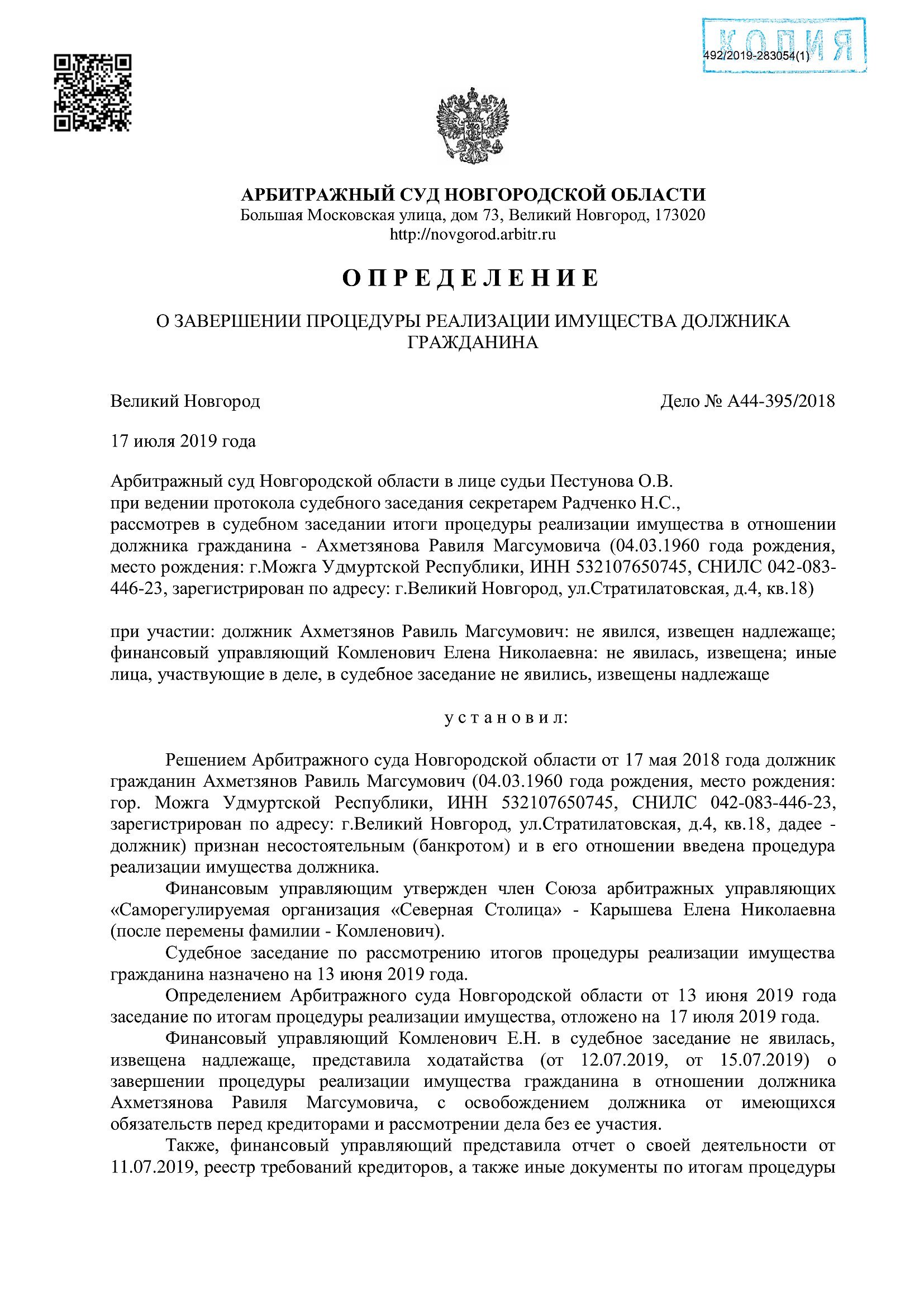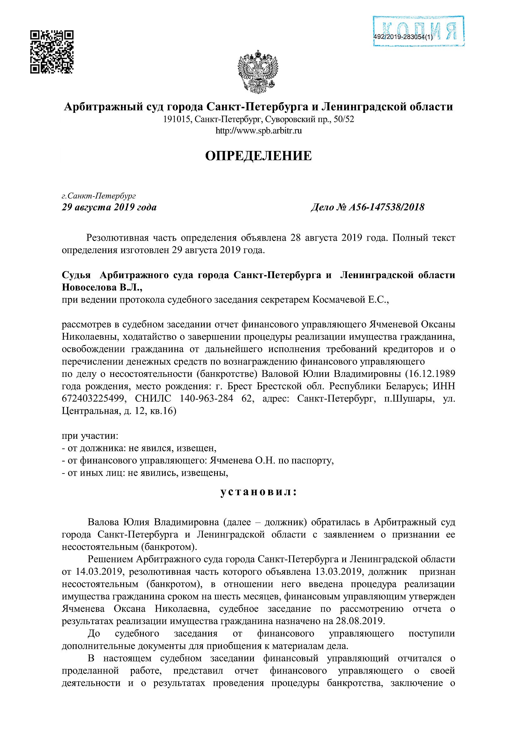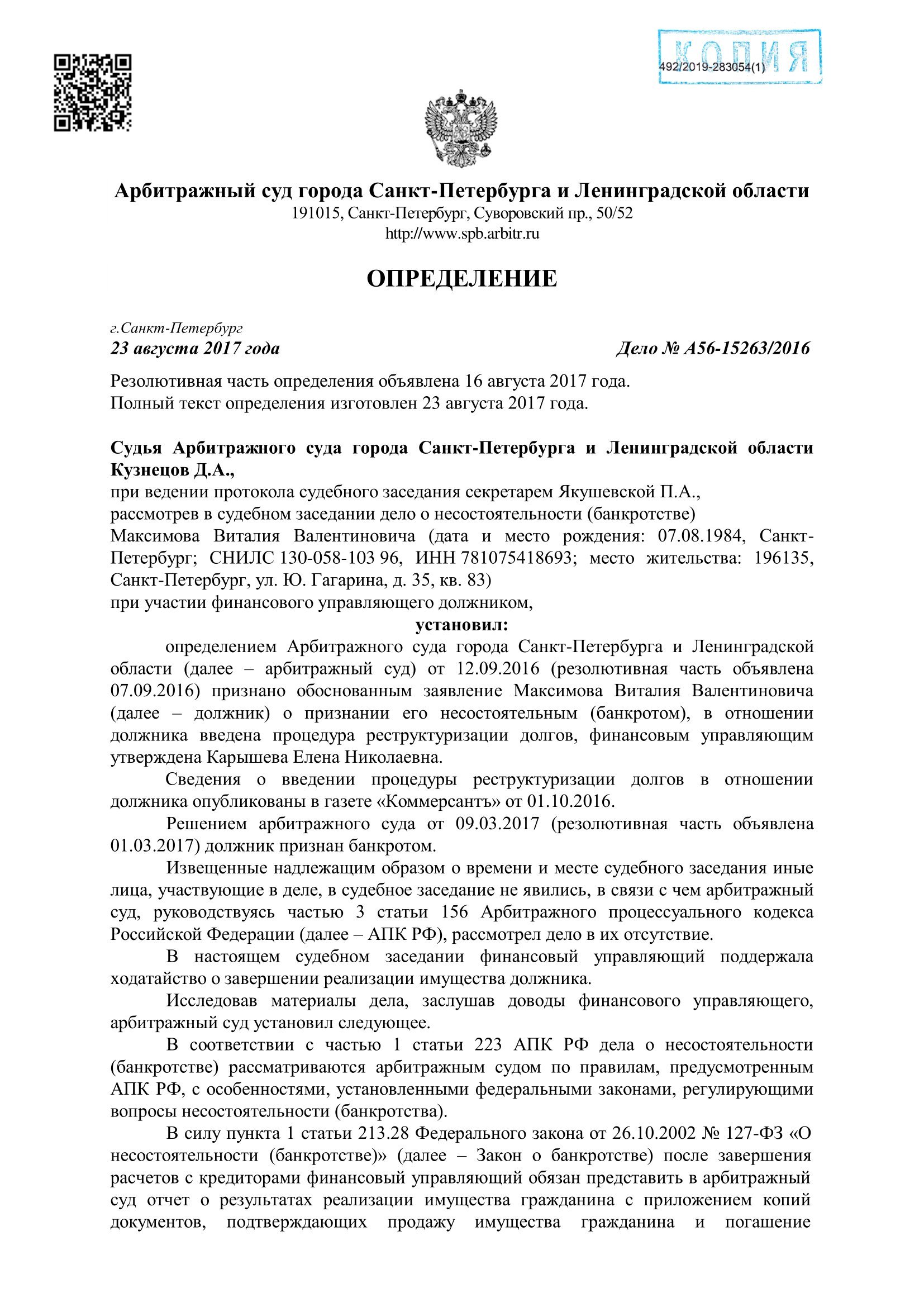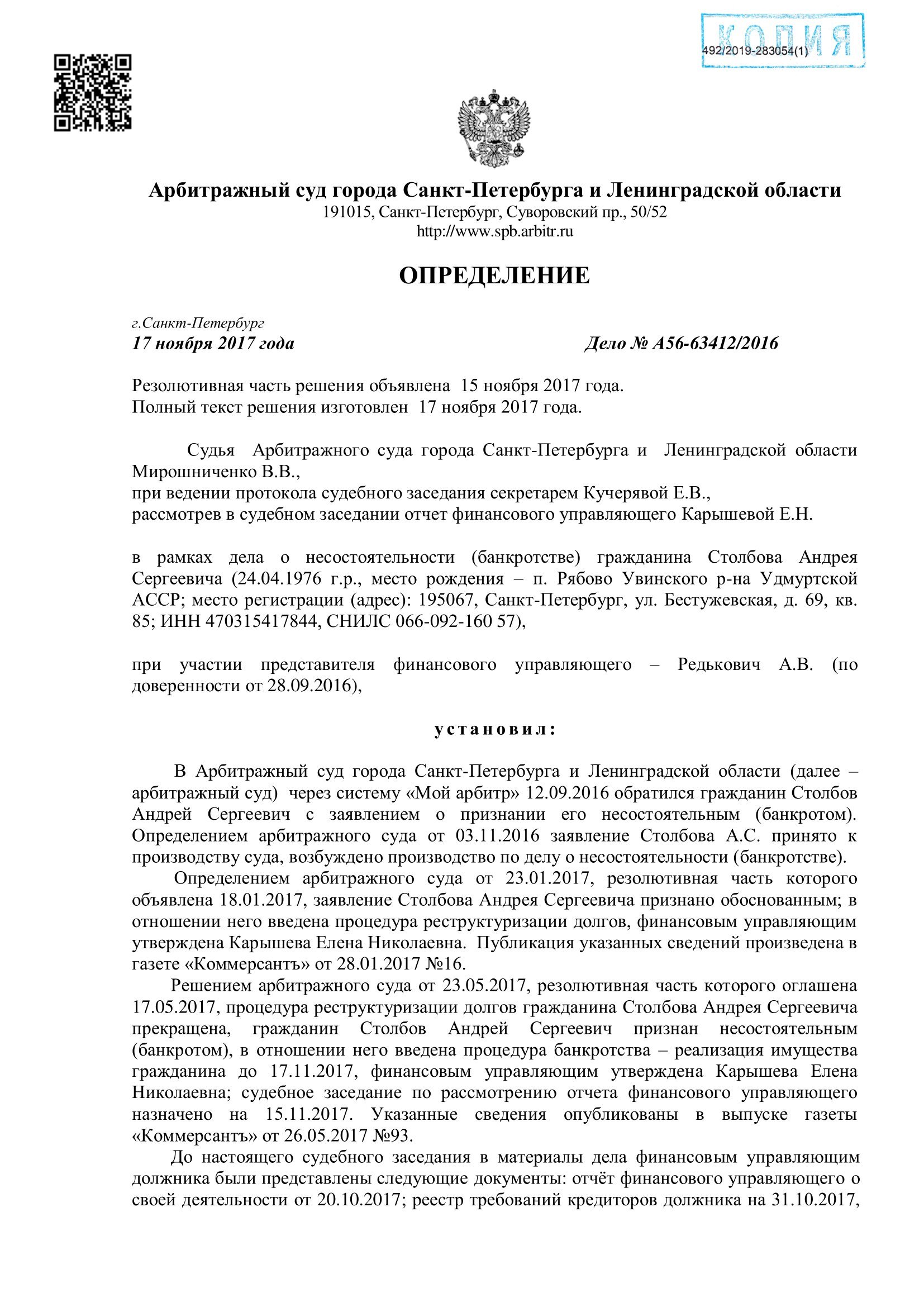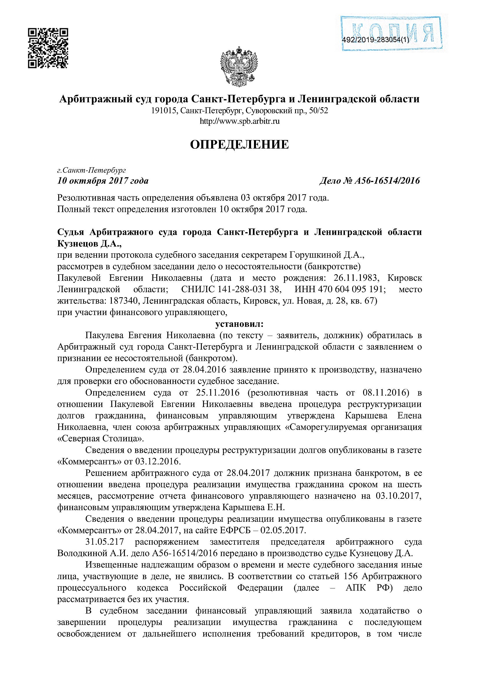 В своей правовой деятельности в качестве арбитражного (финансового) управляющего и адвоката мы придерживаемся принципа публичности. Нажав на кнопку "Посмотреть на сайте суда", вы можете прочитать полный текст судебных актов, опубликованных в официальной Картотеки арбитражных дел РФ.